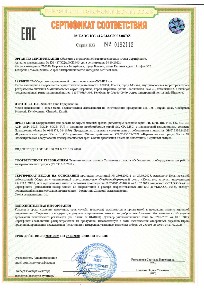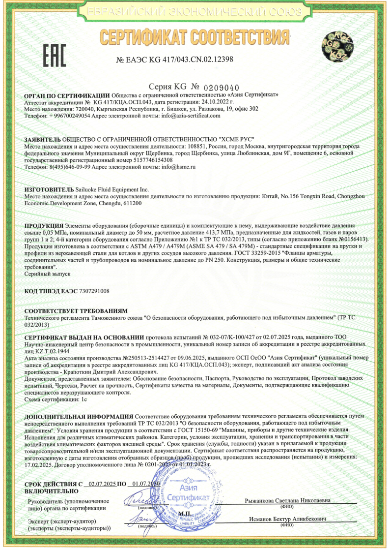 Декларация ТР ТС 032 (схема 1д) на предохранительные клапаны