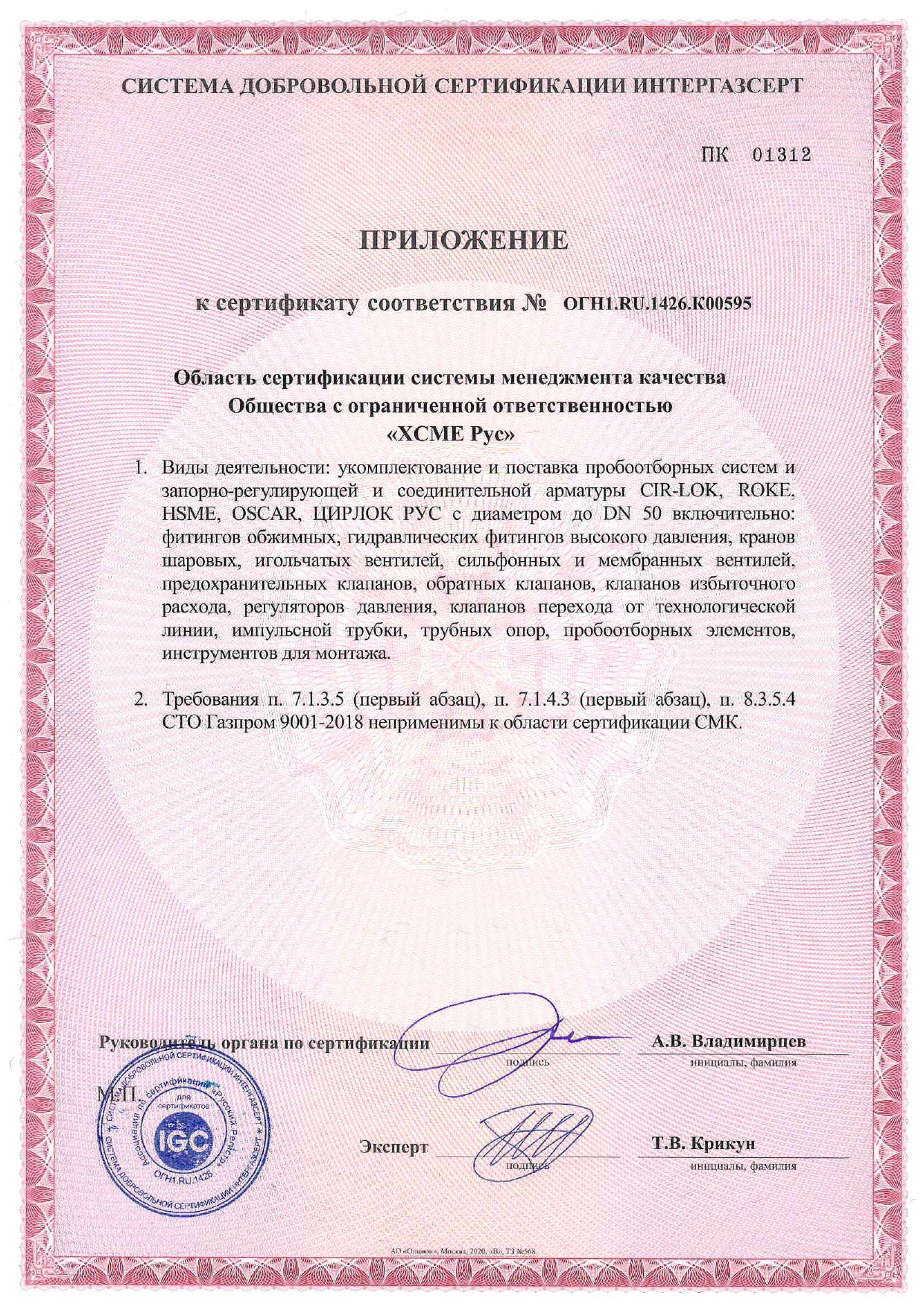 Сертификат соответствия СДС Интергазсерт 2025 год