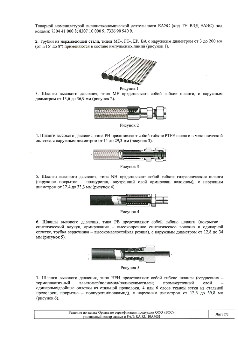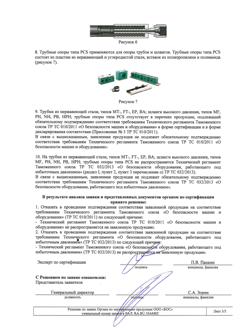 Отрицательное решение ТР ТС 032 и 010 по трубке, шланги, трубные опоры