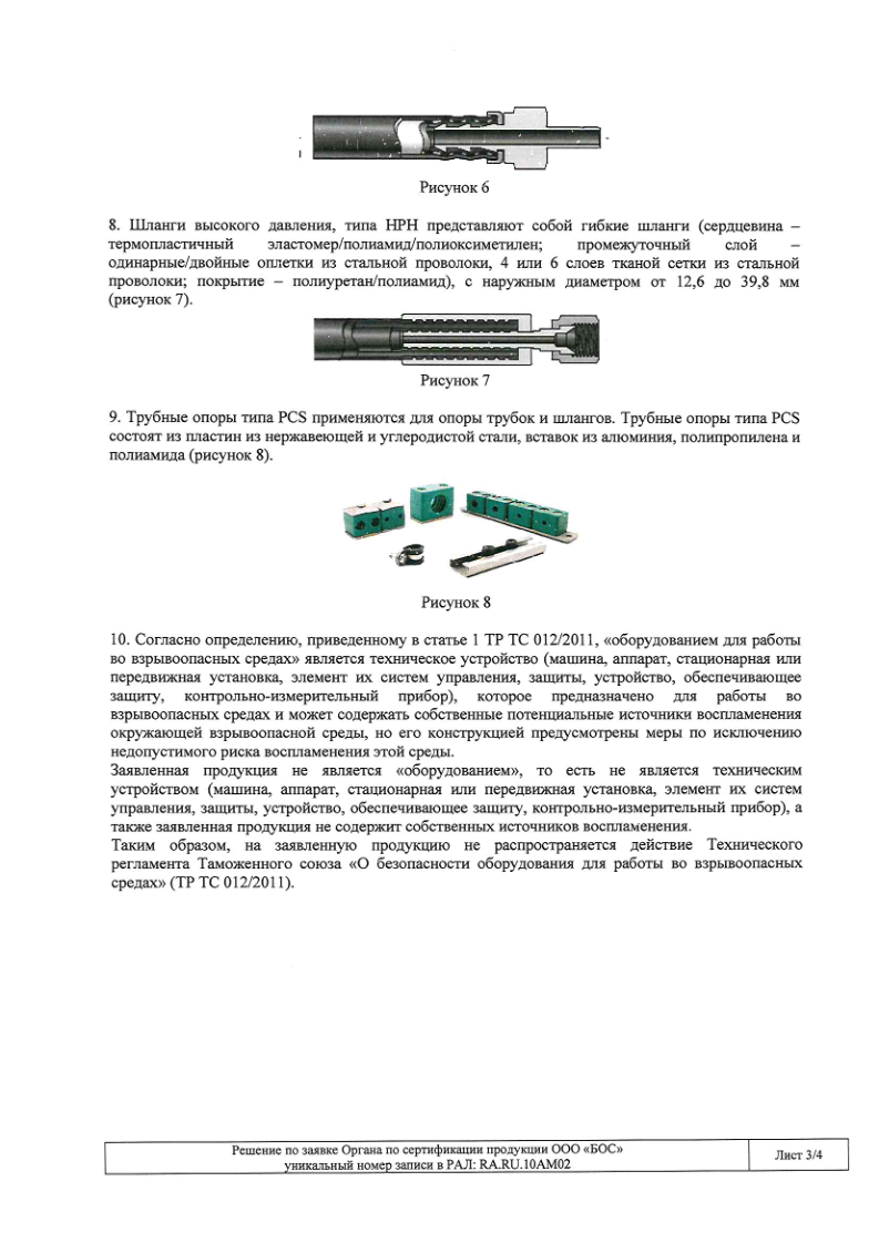 Отрицательное решение ТР ТС 012 по трубке, шланги, трубные опоры