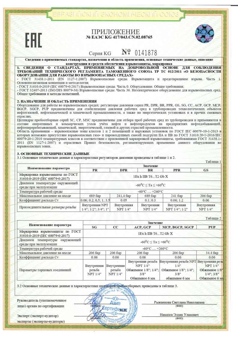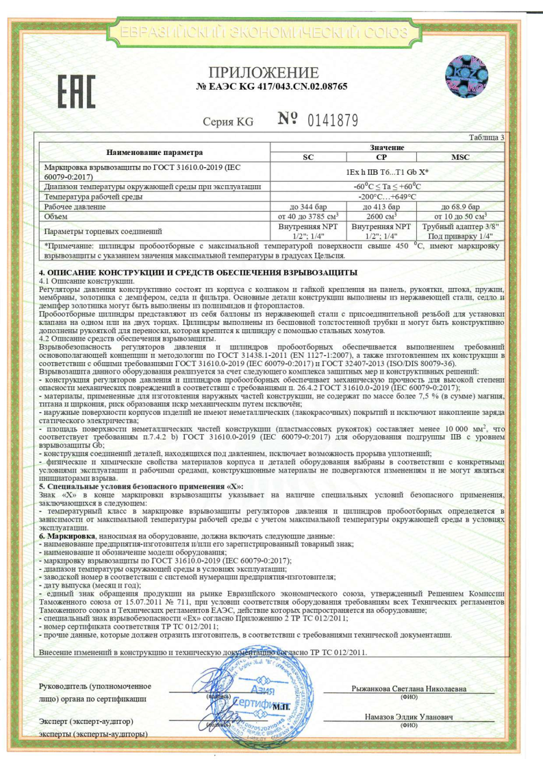 Сертификат соответстви ТР ТС 032 на пробоотборники SC,MSC,CP