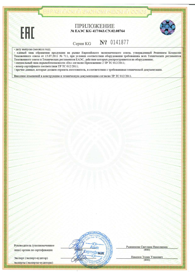 Сертификат соответствия ТР ТС 012 на PR,BR,DPR,SC,CP