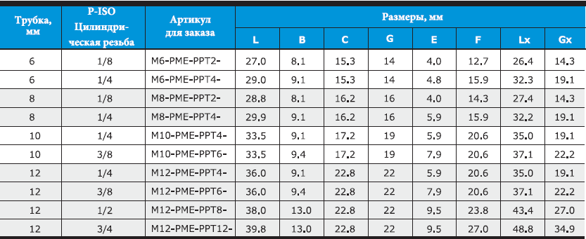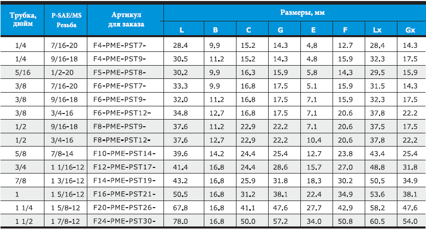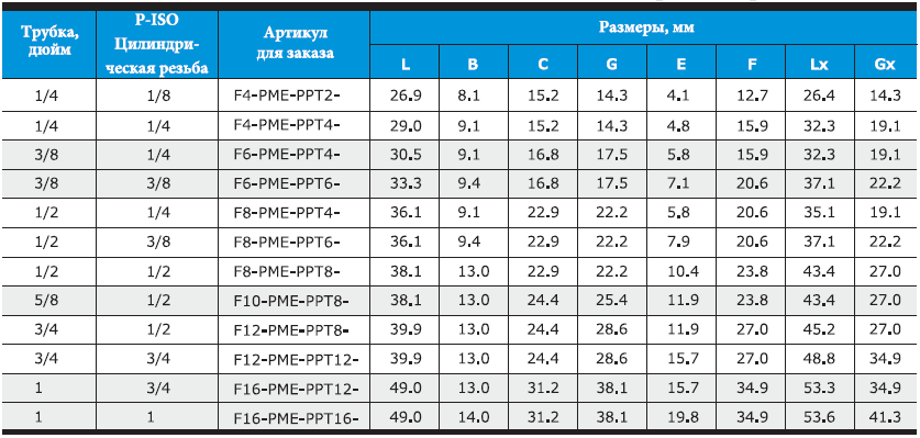 - Доступны размеры фитингов от 1/16 до 2 дюймов и от 2 до 50 мм.