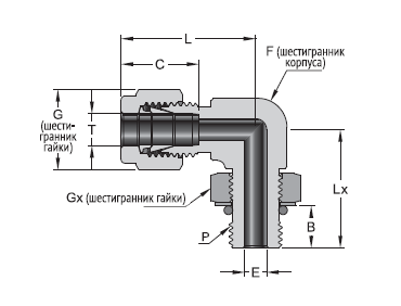 - Подсеребрённая резьба на гайке фитинга для уменьшения усилия при затяжке и исключения эффекта холодной сварки.